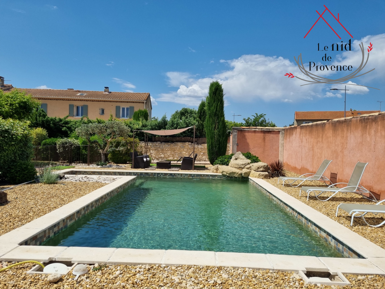 Les deux lieux de vie disposent chacun d'une belle terrasse privative donnant sur un grand jardin arboré, agrémenté d'une magnifique piscine de 9 X 4,5 de construction traditionnelle, d'un joli bassin d'ornement et d'un grand abri voiture.
